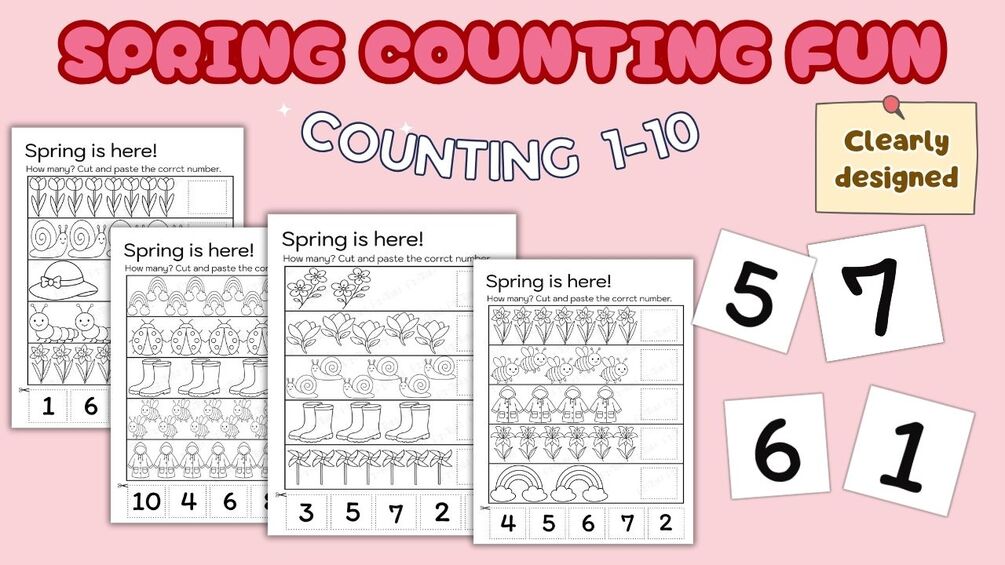 A fun spring activity for little hands! Count the objects, cut the numbers, and paste them where they belong.